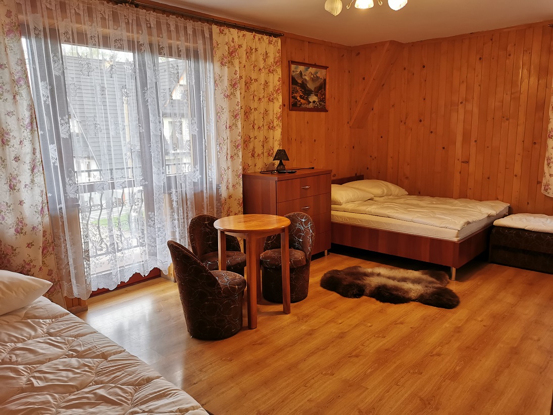 Kameralny dom w stylu zakopiańskim z domową atmosferą i przytulnymi pokojami z łazienkami, u podnóża stoku, 1 km od wyciągu, 10 minut pieszo lub 2 przystanki bezpłatnym skibussem. Dla wszystkich Gości w pokojach czekają ręczniki. Gospodyni serwuje tradycyjną domową kuchnię góralską, pyszne naleśniki, wielkie schabowe oraz niezapomniane zrazy. Pokoje 2,3,4 osobowe z łazienkami. Do naszej dyspozycji świetlica, zabawy i imprezy po nartach. Najbliższe wyciągi są połączone z całym regionem Białki Tatrzańskiej, a przede wszystkim do dyspozycji mamy łagodny stok dla Dzieci do nauki. Dla Gości w piwnicy dostępne są suszarki do butów narciarskich.