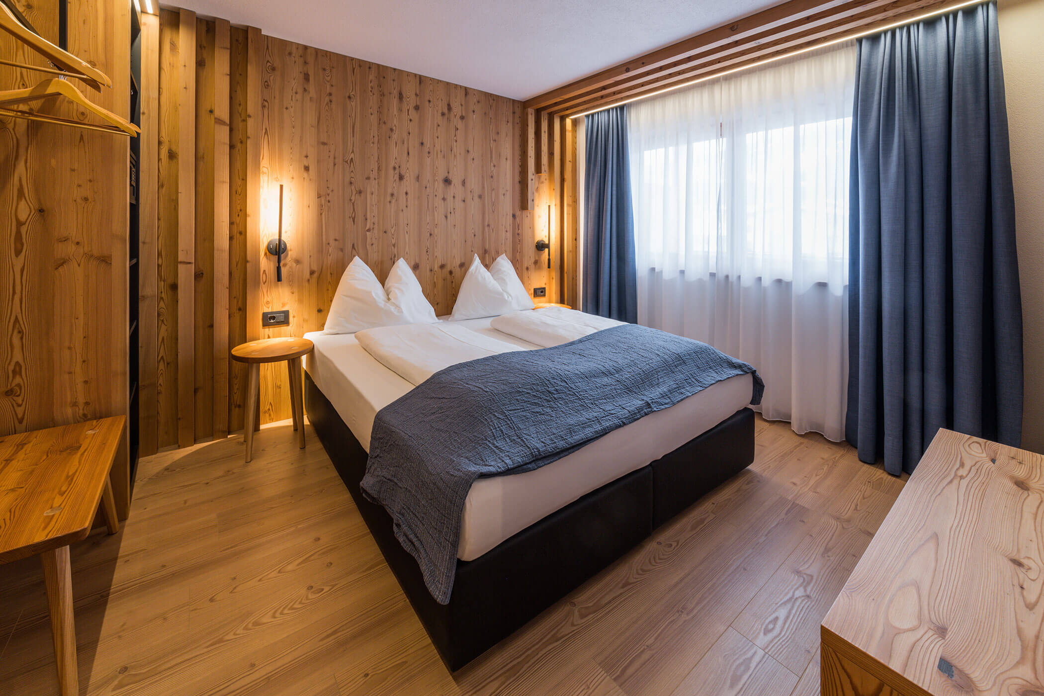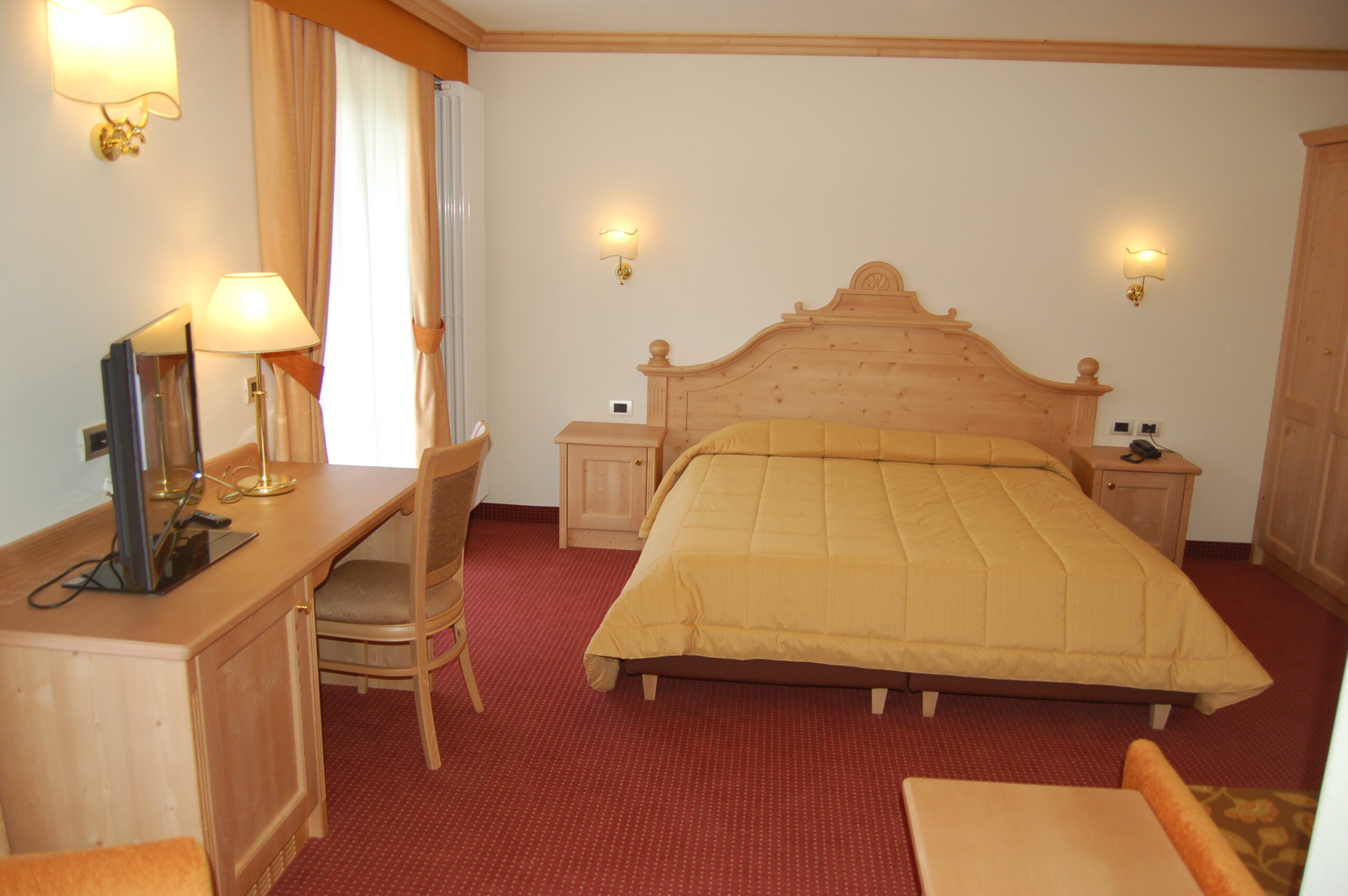 Superior to najbardziej luksusowa propozycja spośród dostępnych pokoi. Nowoczesne, odświeżone wnętrza, przestrzeń większa niż w Standard i Comfort oraz starannie dobrane wyposażenie sprawiają, że pobyt nabiera wyjątkowego charakteru. W pokoju znajdziesz prywatną łazienkę z pełnym wyposażeniem (prysznic, WC, bidet, suszarka do włosów), balkon z widokiem na góry, sejf, telefon, 32-calowy telewizor LED z kanałami satelitarnymi oraz szybkie Wi-Fi. To wybór dla tych, którzy oczekują maksymalnej wygody i najnowszego standardu podczas wypoczynku w Dolomitach.