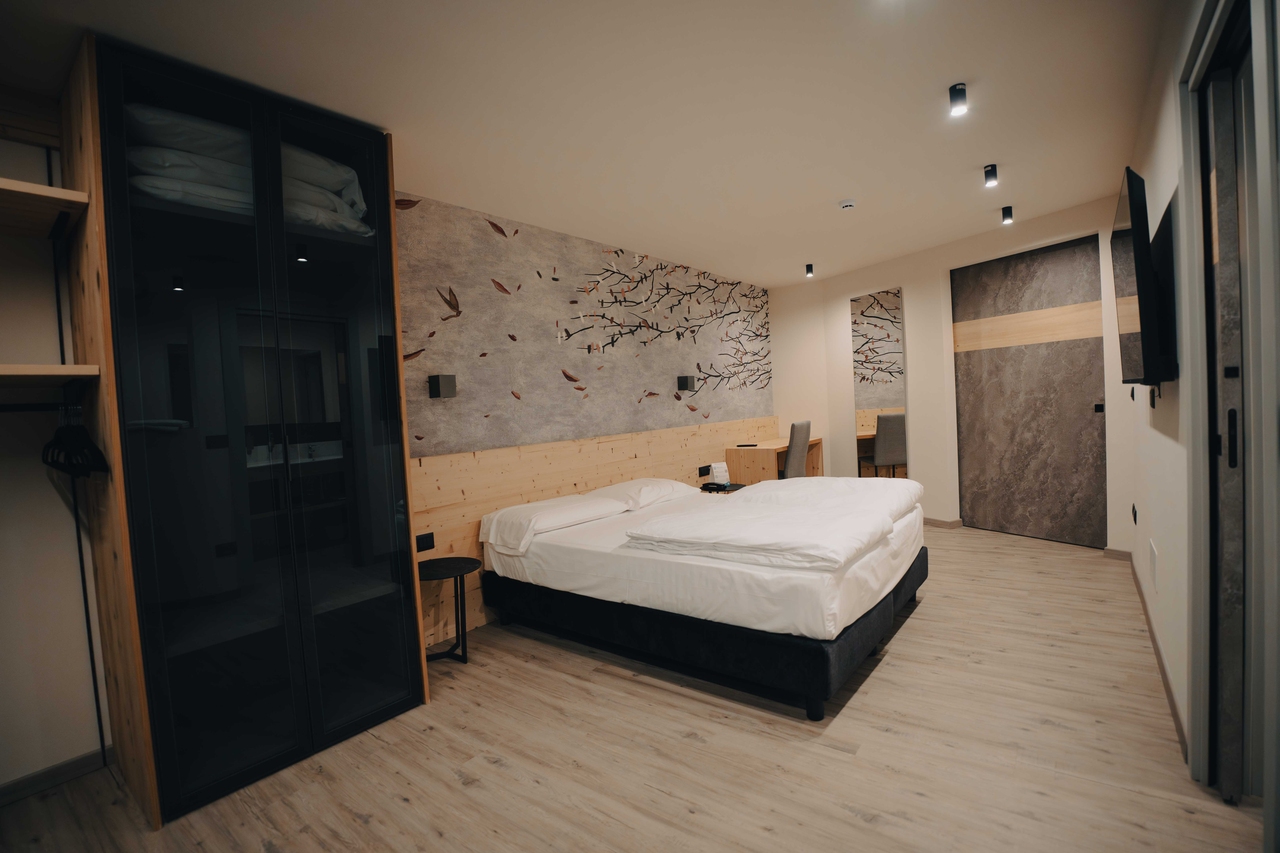 Hotel Sporting znajduje się bezpośrednio przy trasach narciarskich oraz 300 metrów od centrum miasta. Hotel oferuje 59 pokoi standardowych, o podwyższonym standardzie, mini apartamenty i apartamenty rodzinne. Z apartamentów roztacza się zapierający dech w piersiach widok na masyw Presanella o wysokości 3556 metrów lub na górę Cadi, na której zboczach znajduje się większość wyciągów. Wnętrza hotelu zostały urządzone w tradycyjnym stylu alpejskim. Pokoje wyposażone są w wygodne łóżka, pięknie zaprojektowane łazienki z toaletami, większość z nich posiada także balkon z widokiem na malowniczą okolicę. Parking jest dostępny w garażu i na zewnątrz. Hotel Sporting oferuje mnóstwo miejsc i przestrzeni przeznaczonych do spędzania wolnego czasu w gronie znajomych lub rodziny, a wśród nich bar, dyskotekę, salon i wiele innych zakątków, w których dzieci znajdują przestrzeń do zabaw. Uwielbiana przez wszytskich jest salka zabaw z małpim gajem, kulkami i tunelami. Z hotelowej restauracji roztacza się majestatyczny widok na ośnieżone szczyty. Śniadania podawane są w formie obfitych bufetów w formie dań słonych i słodkich, w tym jajka na wiele sposobów, sery, wędliny, warzywa, owoce, jogurty, ciasta i róznego rodzaju musli. Wieczorową porą kucharze zaskoczą nas przysmakami kuchni regionu Trydentu-Górnej Adygi, Lombardii oraz śródziemnomorskiej.